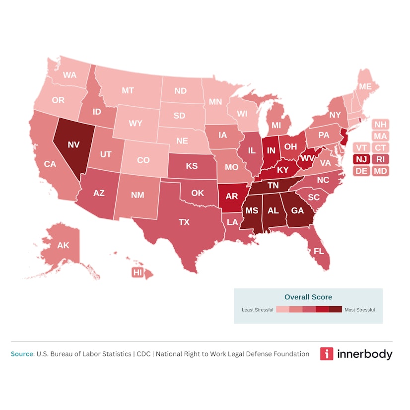 Innerbody Research is committed to providing objective, science-based suggestions and research to help our readers make more informed decisions regarding health and wellness. We invested the time and effort into creating this report to explore which states had “better” or “worse” conditions for employment (e.g., which states were the most or least stressful to work in). We hope to reach as many people as possible by making this information widely available. As such, please feel free to share our content for educational, editorial, or discussion purposes. We only ask that you link back to this page and credit the author as Innerbody.com.